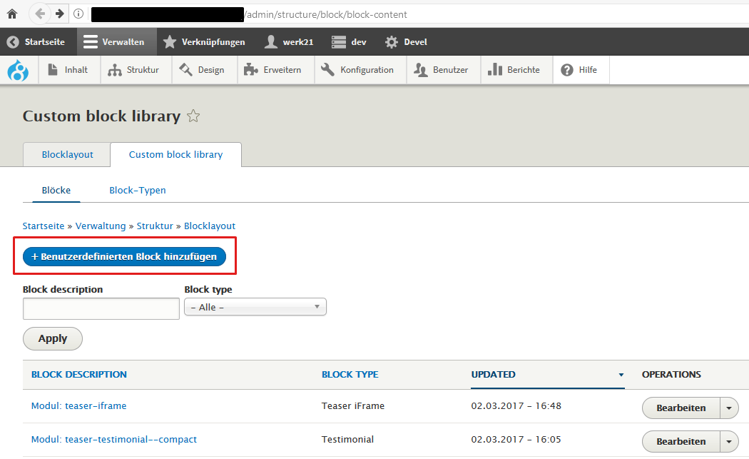 1. Block unter /admin/structure/block/block-content anlegen