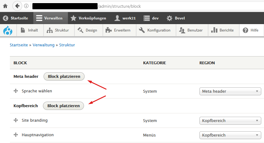 2. Block unter /admin/structure/block platzieren